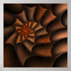 Hochwertige 300ppi Auflösung 12" x 12" quadratische Ausgabe von "Herbst in Ayr", einem Apophysis-Fraktal von Susan Wallace. Copyright © 2009, Susan Wallace. Texturierte Spiralventilatoren in den Farben des Falls - orange, rost und braun - mit einer glatten, seidigen Schere. Geeignet für Plakate oder gerahmte Drucke, entwickelt für Standardrahmen.
