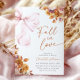 Feiern Sie die zukünftige Braut mit dieser eleganten Braudusche "Liebe in Bloom". Mit einem zarten, floralen Aquarell-Design in sanften Terrakottönen strahlt diese Einladung Charme und Eleganz aus. Ein farbenfroher rosa Bogen und eine anmutige Schriftzeichen-Typografie fügen eine romantische Touch hinzu und machen sie zur idealen Wahl für ein Party im Garten, Frühling oder ein Brautparty mit Blumenmotiven im Herbst.