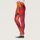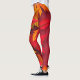 Beinpaare mit Leggings mit rotem Hintergrund und roten und orangefarbenen Blätter, schwarz-weiße Turnschuhe.