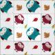 Das Design des ansprechenden Stoffes besteht aus zwei Eulen und Blätter in wunderschönen Herbstfarben.