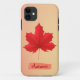 Eigenes Herbstblatt mit farbenfroher Aquarellabbilderung eines abstrakten Ahornblattes in Rot- und Orangetönen. Diese feminine Ahornblatt iPhone Gehäuse hat eine anpassbare Hintergrundfarbe und ist ideal für Leute, die die Herbstsaison Liebe.