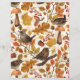 Handgemalte Herbstmuster mit verschiedenen Herbstvorführungen, Blätter, Beeren, Eicheln, Vögeln und Pilzen