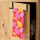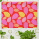 Herbstblätter. Rosa, gelbe, orangefarbene Blätter auf einem hellroten Hintergrund.