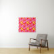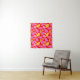 Herbstblätter. Rosa, gelbe, orangefarbene Blätter auf einem hellroten Hintergrund.