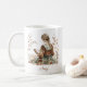 Genießen Sie die ruhige Herbstschönheit mit dieser bezaubernden Tasse, in der Sie eine bezaubernde Aquarellbild einer Frau sehen, die auf einem Feld sitzt, umgeben von zarten Herbstblättern. Verliert in den Seiten ihres Buches, ist sie das Bild der Ruhe. Die sanften Pastellbraun, Orangen und Grüntöne verleihen der Szene einen Vintagen bohenhaften Charme und machen diese Tasse zu einer perfekten Mischung aus Wärme und Eleganz. Diese Tasse kann mit einem Namen personalisiert werden, indem sie eine einzigartige Touch hinzufügt, die es zu einem idealen Geschenk für sich selbst oder einen geliebten macht.
