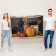 Herbstdekorationen am Tisch, Kürbis, Früchte, Getr Decke