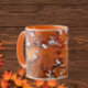 Genießen Sie eine heiße Tasse Kaffee oder heiße Schokolade an einem coolen Herbsttag in dieser Tasse, die ein umhülltes Foto mit orangefarbenen, herbstfarbenen Eichen-Blätter bietet. Wählen Sie die gewünschte Tasse und den gewünschten Stil aus.