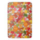 Gemusterte Herbstmatte, mit Kürbis, Herbstblättern, Beeren und Schokolade.