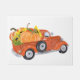 Orangefarbener Vintager Lieferwagen-LKW mit Kürbissen und Sonnenblumen im Hintergrund
