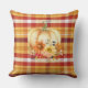 Herbstkürbis in Aquarellfarbe Herbstkürbis mit Blumenkissen mit kariertem Muster