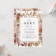 Ein Baby im Herbst zu erwarten - Diese schönen Herbst-Herbst-Babydusche Einladungen sind perfekt! Das Design ist im klassischen Weiß gehalten, mit einem Rahmen mit rosa und weiß rosa Rosen, herbstfarbenen Blätter und rustikalem botanischem Blattwerk. Die Vorlage ist elegant und leicht zu anpassen.