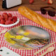 Nachdem der Regen an diesem Morgen im September aufgehört hatte, entschied ich mich, einen Kürbisfarm zu besuchen. Draußen gab es einige Holztische und -bänke, die noch nass vom Regen waren. Ein paar glänzende Blätter lagen auf dem Tisch. Die Sonne fing an, sich durch die Wolken zu erhellen und den Tisch kurz zu beleuchten, sodass diese Herbstfarben schön ausgeschmolzen werden konnten.