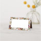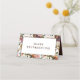 Set eines festlichen Erntedank Dinner Tisch für Freunde und Familie mit diesen im Herbst blumigen Platzkarten. Die tiefroten und herbstgoldenen Blume sind eingebettet in Herbstlaub und grüne Weinreben für eine moderne botanische Atmosphäre. Sie schaffen einen eleganten Rahmen, um einen weißen Platz für die Namen der Gäste zu umgeben. Glückliches Erntedankfest steht auf der Rückseite. Das Innere der Platzkarte ist tiefrot.