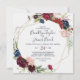 Diese Herbstgarten burgundische geometrische quadratische Hochzeitseinladung ist perfekt für eine Hochzeit im Herbst. Das Design umfasst atemberaubende rot-rosa, rot-bordeauxfarbene Blume, Blüten und grüne Blätter, die in einem lebhaften, blumengeometrischen Rahmen angeordnet sind.