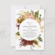 Eine hübsche, rustikale Babydusche mit dunkelgrauem Text in einem weißen Kreis, umgeben von einem Blumenstrauß in den Herbsttönen Paprika, Orange, Bordeaux, Braun, Gold, Rosa, Pfirsich, Rost, Elfenbein und Sahne. Die Rückseite ist ein passender Schatten von tiefburgund. Ideal für eine Herbstdusche. Entwerfen Sie einen Blick in unsere Kollektion Rustikale Blumen im Herbstgarten.