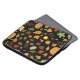 Dekoratives Herbstdesign mit Herbstlauben, Äpfeln, Beeren, Pilzen, Kürbissen, Pineconen, Eicheln und Squash.