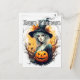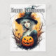 Diese kreative und einzigartige Happy Halloween Postkarte zeigt eine Illustration einer Hexe, die die Herbstsaison genießt. Sie sind eingeladen, alle verfügbaren Optionen nach Ihren Wünschen anzupassen.
