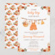 Diese niedliche und skurrile Babydusche bietet eine Babybekleidung mit orangefarbenen Blumenarrangements. Der Text kombiniert handgeschriebene Skripte mit serifenlosen Schriftart für ein stilvolles und modernes Design. Dies ist perfekt für eine Herbstdusche. Grafiken von www.etsy.com/uk/shop/SunflowerDayLove