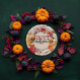 Herbstkranz des Erntedanks mit mehreren Blättern Pappteller