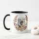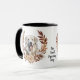 Ein hübscher Herbstkranz in den Farben Zimtbraun, Bräune und Creme umgibt das Aquarellbild eines wunderschönen weißen Hundes aus den Pyrenäen. Das Bild wird zweimal auf der Tasse gedruckt, wobei der eigene Text dazwischen liegt.