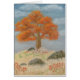 Ein Singlebaum mit hellen Schatten des orange Laubs.