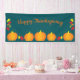 Farbenfrohe Blätter in Orange und Gelb, runde Kürbis in Orange und Orange schmücken dieses aquamarine, dunkelblaue Banner mit Happy Thanksgiving. Dieses Banner kann für Herbstveranstaltungen, Erntefestspiele, Erntedank, Freundschaften, Trunk oder Treating verwendet werden. Attraktives Banner ist ideal für Kirchengruppen, Stadtbezirksschilder und Marketing.