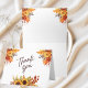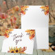 Herbst Dankeschön an die Bemerkung, dass die Aquarellblumen, Sonnenblumen, Herbstlaub und Beeren in Orange, Rot und Gelb gehalten sind. Das Script Dankeschön Sie auf der Vorderseite in einem Schriftart Farbe angezeigt, um Abbildungen. Die Blumengrenze wird oben und unten in absichtlich verlassen Leerzeichen wiederholt, um Platz für eine persönliche Note zu schaffen. Erhältlich in zwei Größen.