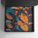 Herbstlaube und Rowan Beerry Tissue in blau-orangefarbenen Farben. Abstraktes modernes Blumentherzenöl bemalt Kunst.