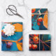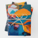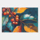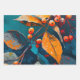 Herbstlaube und Rowan Beerry Wrapping Paper Sheets. Abstraktes modernes Herbstöl gemalt Kunst in blau-gelb-orange Farben.