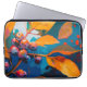 Herbstlaube und Rowan Beerry Laptop Ärmel. Abstraktes modernes Herbstöl gemalt Kunst in blau-gelb-orange Farben.