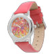 Rote Armbanduhr aus rotem Edelstahl mit einem Bild der Blätter Rot, Gold, Gelb, Orange und lila im Herbst. Sehen Sie sich die gesamte Erntedank Wristwatch Kollektion im Bereich HOLIDAYS an.