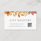 Diese individuell anpassbare QR-Code Geschenkkarte bietet eine weiche Aquarellgarage mit fallendem Blattwerk in warmen Tönen wie Rost, Bernstein und Olivgrün. Es ist eine stilvolle und bequeme Möglichkeit, Ihr Geschenkregister für Herbstveranstaltungen wie Hochzeiten, Brautpartys, Babyduschen und vieles mehr zu teilen. Personalisieren Sie die Karte einfach mit Ihrem eigenen Registrierungslink und einer benutzerdefinierten Formulierung, um Ihre Veranstaltung Anzug. Das elegante Herbstdesign verbindet sich wunderbar mit rustikalen, boho- oder saisonalen Themen. Fügen Sie diese Karten zu Ihren Einladungen hinzu oder zeigen Sie sie bei Ihrer Veranstaltung für eine moderne und durchdachte Touch.