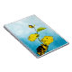 Ein kleiner Pappelbaum-Zweig mit verwitterten und verwitterten Blätter, abgeschieden mit einem blau-weiß strukturierten Hintergrund, der als Himmel dient. Fotografische Malerei.