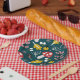 Herbstliche Herbstlaube mit Pilz im grünen Schatt Pappteller