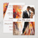Die atemberaubende Save the Date-Karte, die perfekt zu Ihrem modernen Hochzeitstil passt. Die Vorderseite zeigt die gleiche faszinierende Abbildung der Braut und des Bräutigams, die unsere Einladung schmückt, gerahmt von einem knackigen weißen Band, das elegant durch die Mitte der Karte läuft. In diesem weißen Band finden Sie die Wörter "Save the Date" elegant geschrieben, um der Erholung des Designs zu entsprechen. Aber die Schönheit hört dort nicht auf. Die Rückseite der Karte zeichnet sich durch eine geschickte und künstlerische Verwendung der bemalten Farbspritzen aus der Illustration aus, wodurch ein visuell dynamisches und asymmetrisches Design entsteht. Diese Splashes gravieren diagonal die obere und die untere rechte Ecke und zeichnete das Auge in den zentralen Weißbereich, wo wichtige Save the Date Details sichtbar angezeigt werden. Diese Save the Date-Karte ist nicht nur ein schönes Kunstwerk, sondern auch ein praktisches Mittel, um Ihren Gästen die Termine für Ihren besonderen Tag zu verdeutlichen. Mit seinem exquisiten Design und der cleveren Verwendung von Farben, wird es sicher einen bleibenden Eindruck machen.
