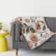 Das Bild zeigt ein anmutiges Muster aus stilisierten Blumen in warmen Orange- und Brauntönen, umgeben von grünen Blättern und zarten Zweigen. Die harmonische Wiederholung der Elemente strahlt eine ruhige Herbststimmung aus, die Wärme und Natürlichkeit vermittelt. Es erzeugt ein Gefühl von Geborgenheit und ästhetischem Gleichgewicht.