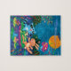 Künstler: Elisa Chavarri | Racoon und Hasen und Frosch und Eule tanzen nachts im Teich mit einem großen Herbstmond über ihnen im Himmel