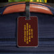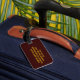Machen Sie Ihr Gepäck auf einem Flughafenkarussell mit einzigartigen Tags auffallend! Es ist Herbst, und ein leuchtend goldgelber Vollmond ist hinter den schwarzen Silhouetten von Blätter aufgetaucht, die in der Brise auf diesem dramatischen kunstfotografischen Gepäckanhänger wehen. Der Hintergrund ist in Orange-, Gold- und Brauntönen beleuchtet, um ein abstraktes Muster in einem asiatischen Motiv zu erzeugen. Die Rückseite hat einen braunen Hintergrund für Ihre persönlichen Daten.