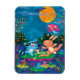 Künstlerin: Elisa Chavarri | Racoon und Hasen und Frosch und Eule tanzen nachts im Teich mit einem großen Herbstmond über ihnen im Himmel