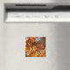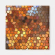Dieser dekorative Magnet zeichnet sich durch ein geometrisches abstraktes Muster aus fünfseitigen pentagon-förmigen Mosaikfliesen in brillanten Herbstfarben aus Rot, Orange, Braun, Gelb, Gold, Blau, Grau, Schwarz und Weiß aus.