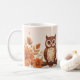 Dieses bezaubernde Design besticht durch zwei bezaubernde Eulen auf einem Ast, umgeben von wunderschönen Blume und Blätter in warmen Herbsttönen. Die zarten Details und warmen Farben schaffen eine gemütliche und einladende Atmosphäre, die perfekt ist, um die Schönheit der Saison zu feiern. Ideal, um Ihren Tasse eine Touch von Charme und Natur hinzuzufügen.