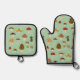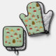 Ein Muster von Pilzen in den Herbstbraun, Rot und Orangen. Der Hintergrund ist hellgrün.
