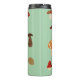 Eine Reihe von Toaststühlen in Herbstfarben auf einem hellgrünen Hintergrund.