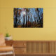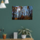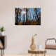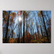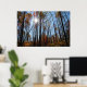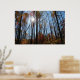 Dieses Poster zeigt die Sonne, die durch große Herbstbäume scheint. Bunte Blätter, blauer Himmel.