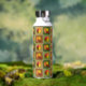 Vier Plätze sind mit Blätter und Kürbissen in den Farbtönen Rot, Orange, Gelb und Braun dekoriert. Die weiße Naht fügt eine dekorative Touch hinzu, die dem sich wiederholenden Muster das Aussehen eines Steppdecks verleiht und ein sehr gemütliches Gefühl für den Herbst schafft.