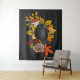 Handbemalte Illustration eines Raben- und Herbstbotanicals-Blätter, Pilze und Beeren