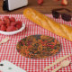 Handgezeichnet Herbstmuster mit Pilzen, verschiedenen Beeren, gefallenen Blätter und Käfern