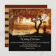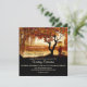 Eine romantische Hochzeitseinladung mit Blick auf einen See mit einem schönen Baum in festlichen Herbstfarben und einer Laterne. Diese Einladung hat auch eine RSVP-Karte.