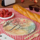 Autumn Road Design auf einer Papierplatte. Der Fall ist in der Luft..jede Feier wird diese Landschaft Liebe.
