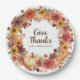 Bringen Sie die warmen Farbtöne des Herbstes an Ihren Urlaubstisch mit diesen eleganten Erntedank-Papier-Tellern! Mit einem wunderschönen Aquarellkranz aus herbstlichen Blume, Kürbissen, Gourds, Herbstlauben und Eicheln, die schön rund um den Tellerrand angeordnet sind. Ideal für Erntedank-Dinner, Ernte-Party oder saisonale Ansammlungen. Center links für Essen oder optionalen Text wie "Give Danke". Heller, moderner Aquarellstil mit lebhaften Herbstfarben für eine festliche, gemütliche Atmosphäre.